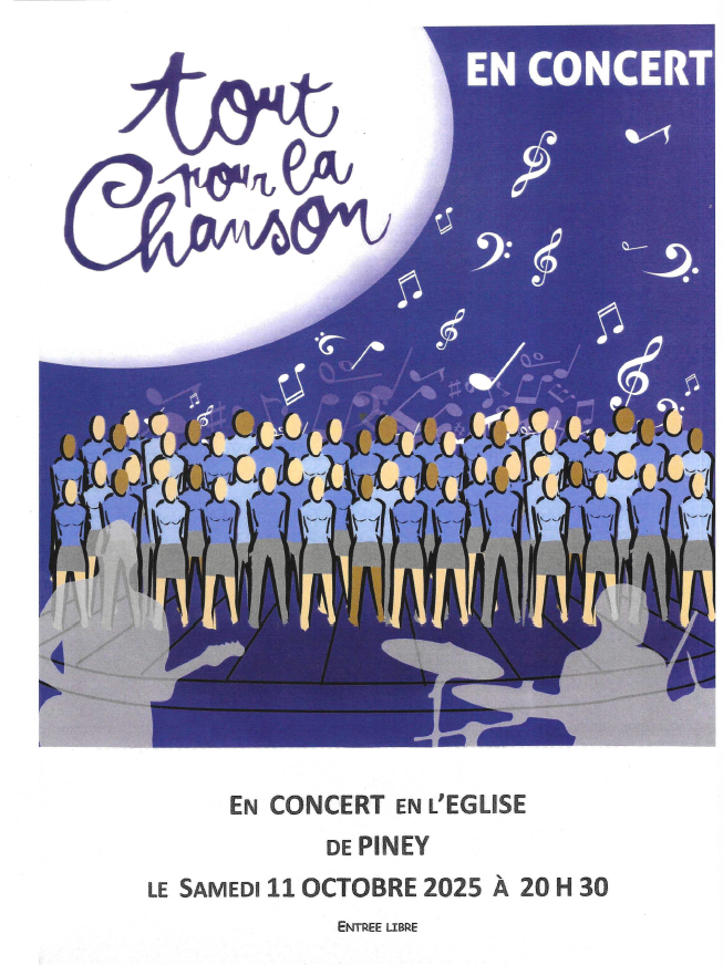 La chorale “Tout pour la chanson” sera en concert en l’Église de Piney samedi 11 octobre 2025 à 20h30